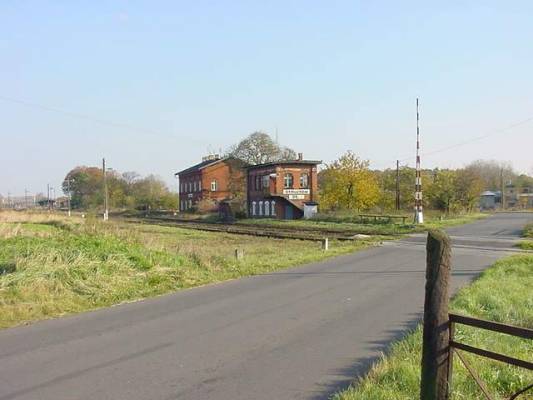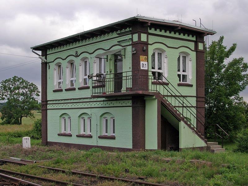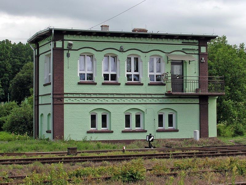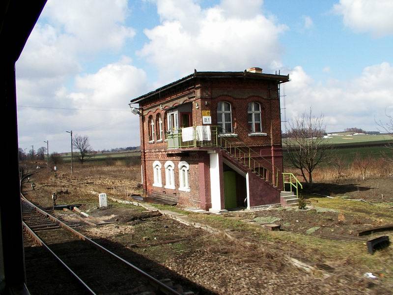 Nastawnia wykonawcza Ot1 stojąca na wschodniej głowicy stacyjnej, na wjazdach z Nysy i Bernatic. Widok w kierunku zachodnim (perony).