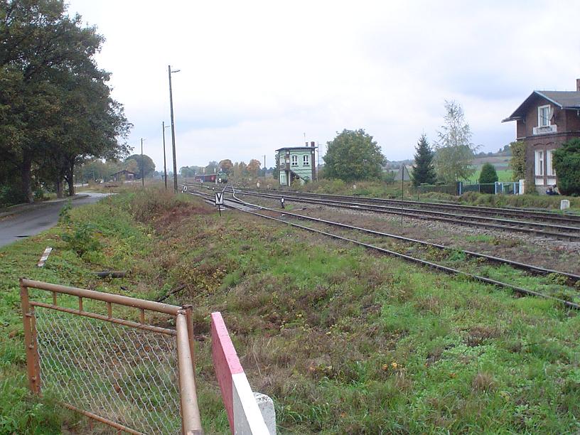 Nastawnia dysponująca Ot na zachodniej głowicy stacyjnej. Widok w kierunku południowym; w lewo perony, w prawo Paczków/Kamieniec Ząbkowicki i (kiedyś) Przeworno.