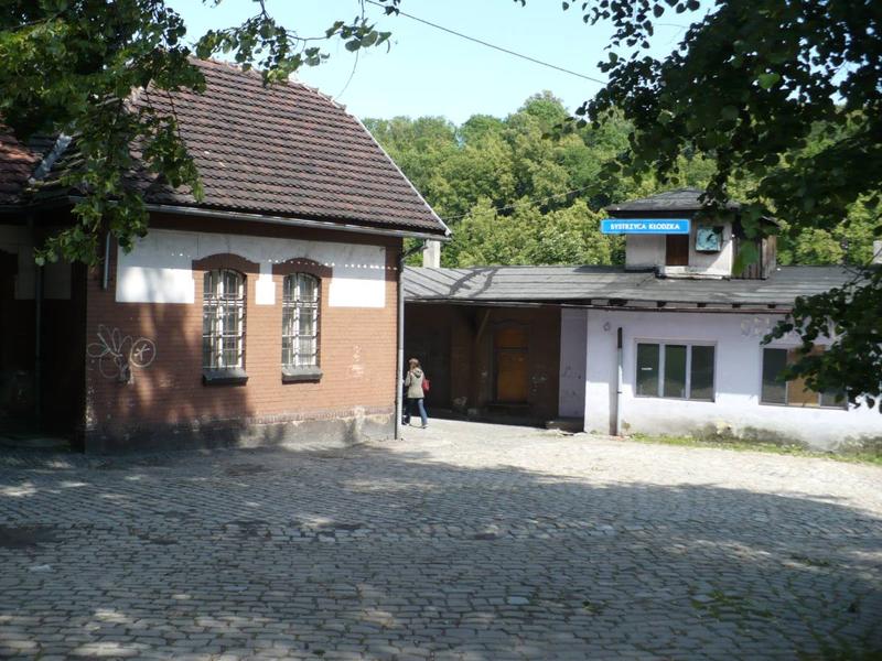Przystanek Bystrzyca Kłodzka PKP. Jeden z budynków dworcowych. Widok od strony miasta, w kierunku zachodnim.