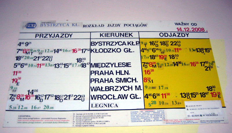 Przystanek Bystrzyca Kłodzka PKP. Rozkład jazdy 2008/09.