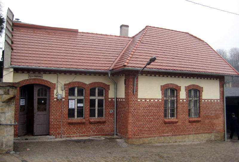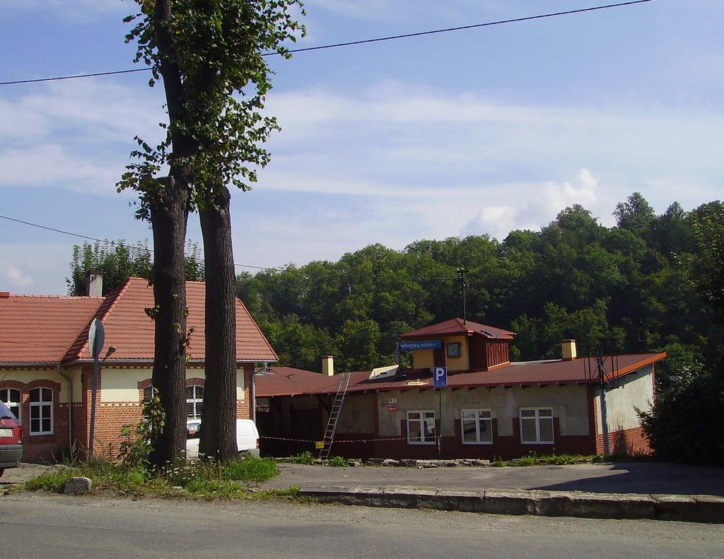 Przystanek Bystrzyca Kłodzka PKP. Budynek, w którym znajduje sie kasa biletowa.