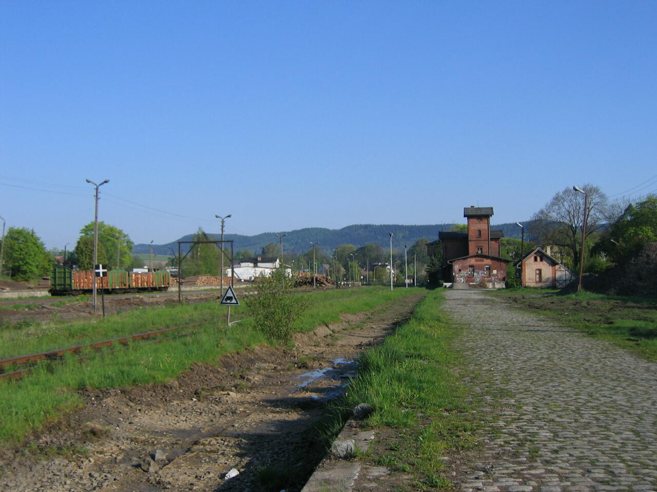 | wieża wodna: | Nieczynna wieża wodna stoi w północnej części stacji, ok. 100 m od budynku dworca, ma jeszcze zbiornik i instalację wodną wewnątrz, od strony torów pod drewnianą częścią zbiornikową jest widoczny wskaźnik poziomu wody w zbiorniku. Wejście do wieży oraz okna w dolnej części trzonu są zamurowane. Zdewastowane są przede wszystkim dach, okna i fragmenty drewnianej części zbiornikowej. Podobne wieże znajdują się m.in. na stacjach Jordanów Śląski, Ławszowa i Stronie Śląskie. (info: Bolesław Wojtyniak, 11-12-2009). | |