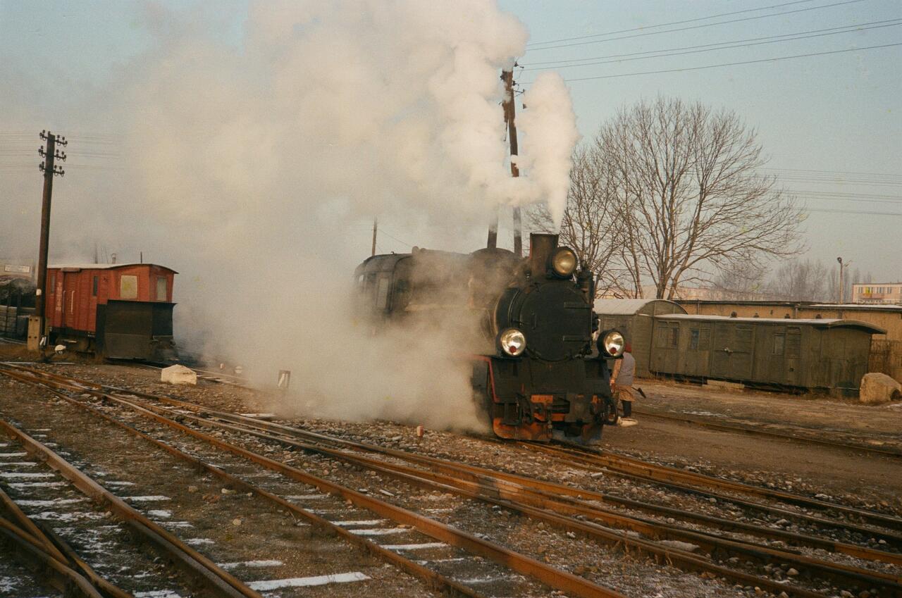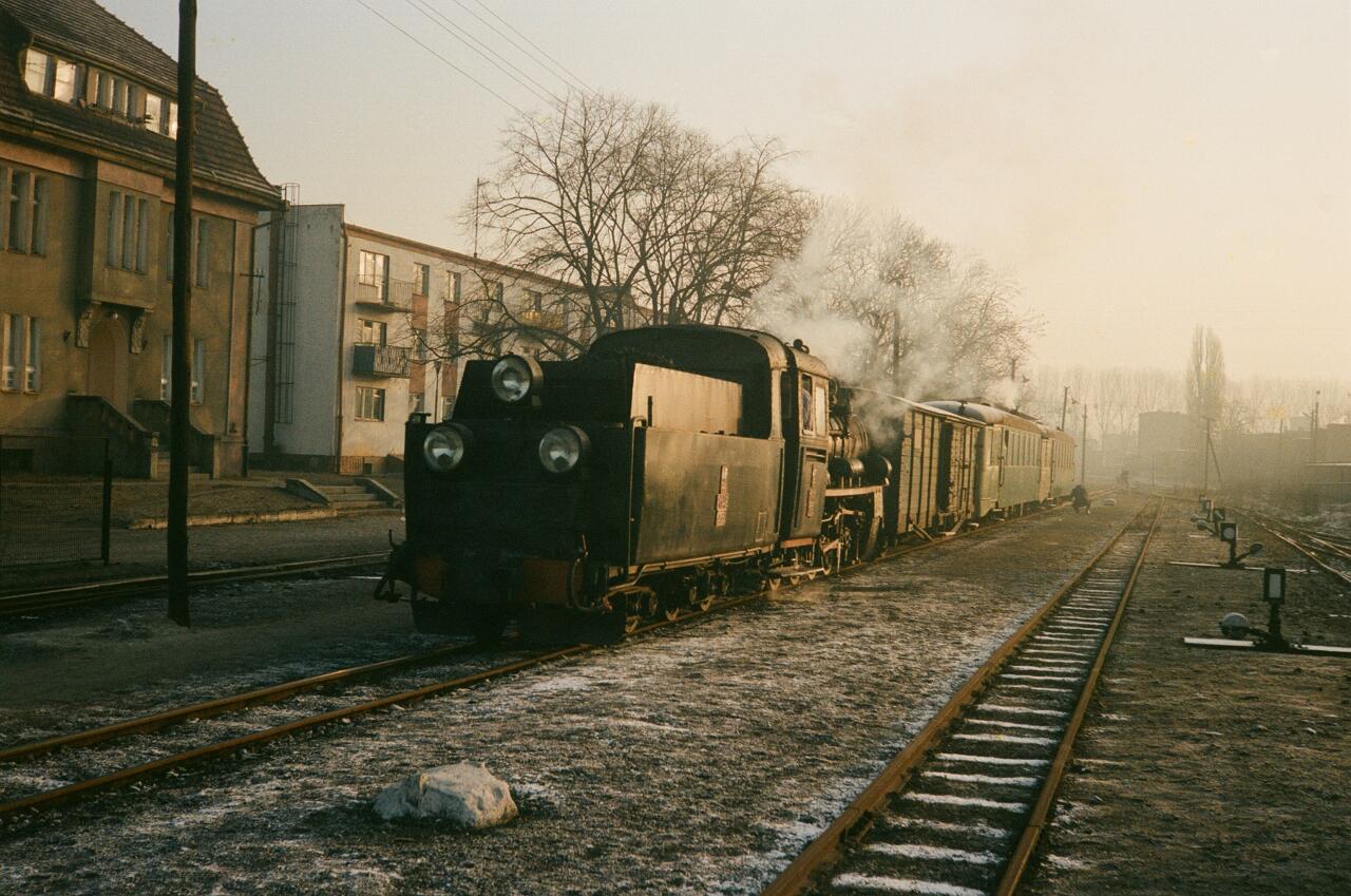 Parowóz Px48-1756 wyjeżdża z parowozowni celem podjęcia pociągu osobowego do Zaniemyśla.