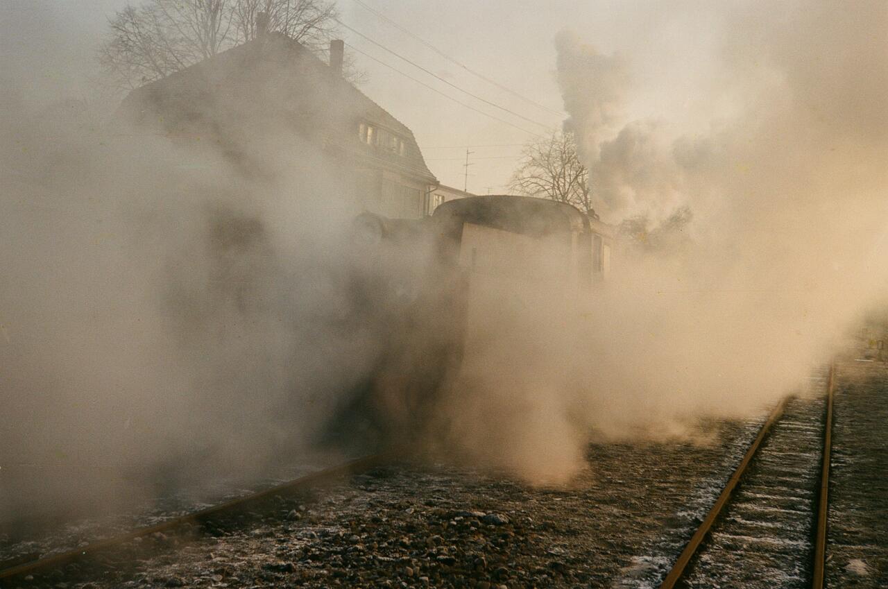 Parowóz Px48-1756 w kłębach pary. Widok w kierunku stacji Poznań Kobylepole Wąsk.