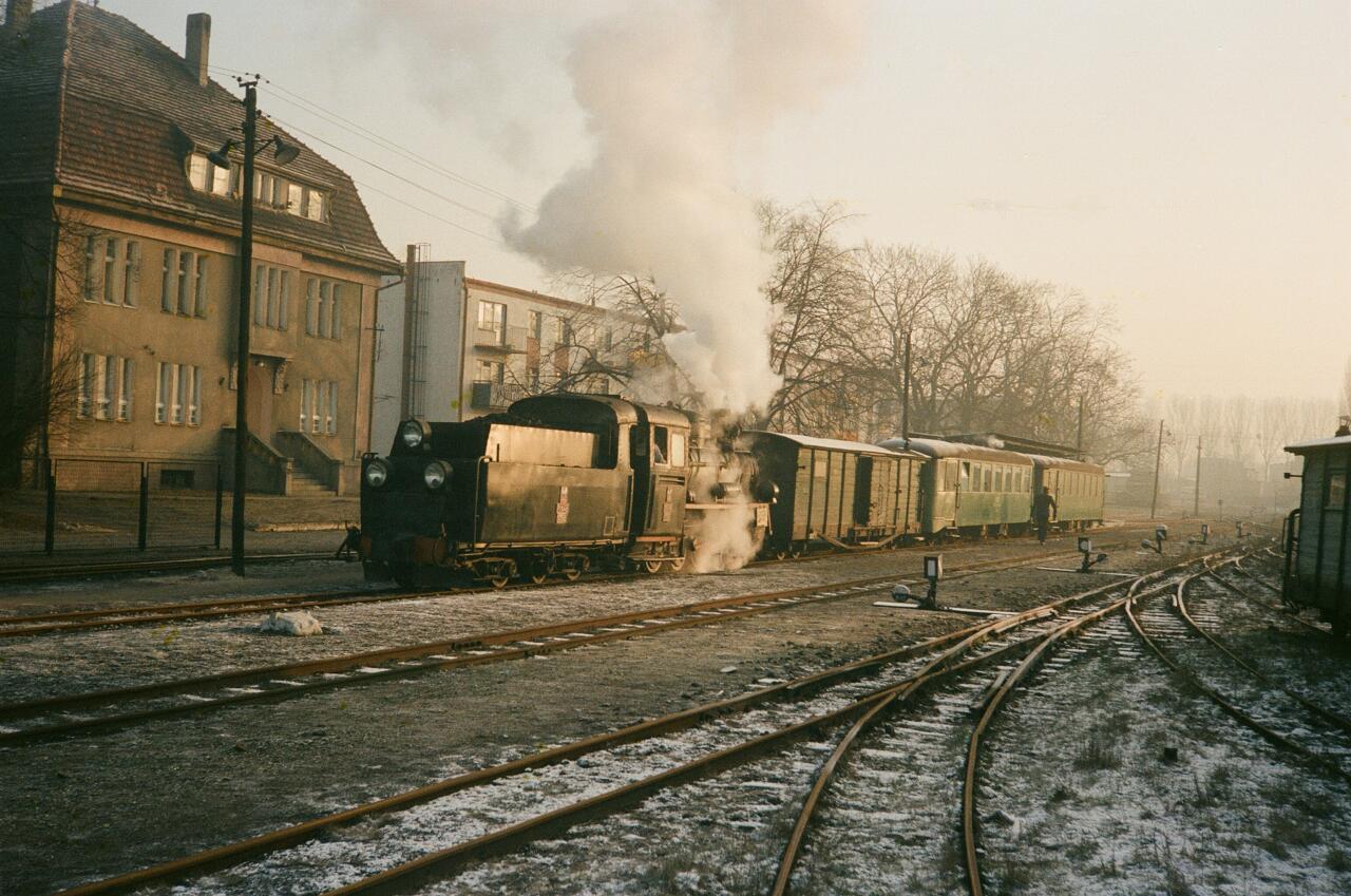 Pociąg TTO 7256 relacji Zaniemyśl - Środa Wielkopolska Miasto, prowadzony parowozem Px48-1756 skończył bieg. Widok w kierunku stacji Zaniemyśl.
