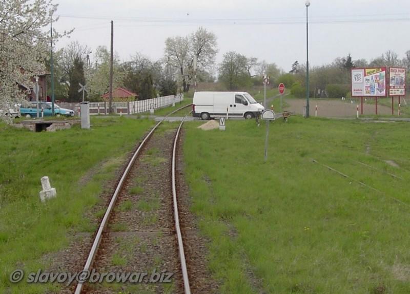 Wylot w stronę Lipowej Śląskiej i Brzegu. W tle przejazd kolejowy przez ul. Wrocławską, za którą stoi nieczynny semafor wjazdowy. Widok w kierunku północnym.