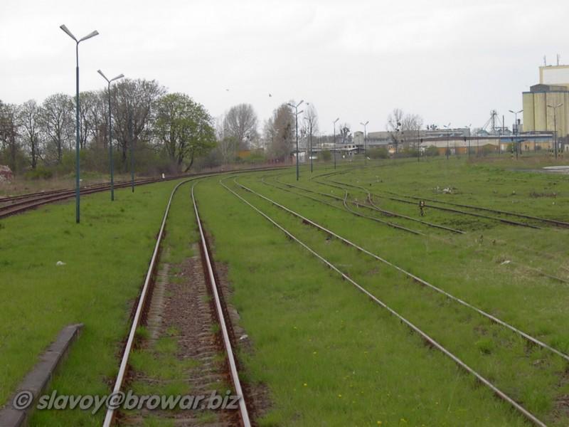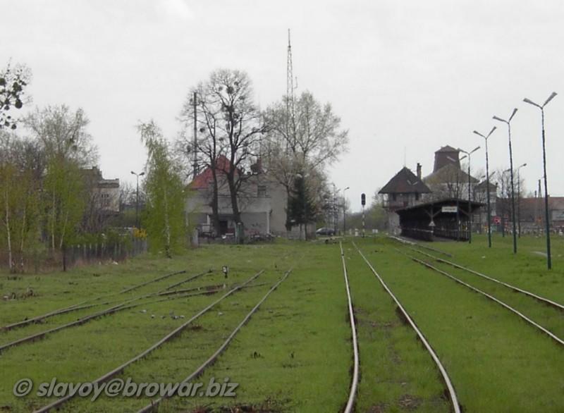 Od strony Lipowej Śląskiej i Brzegu w kierunku południowym. W tle budynek dworca i perony.