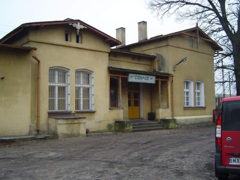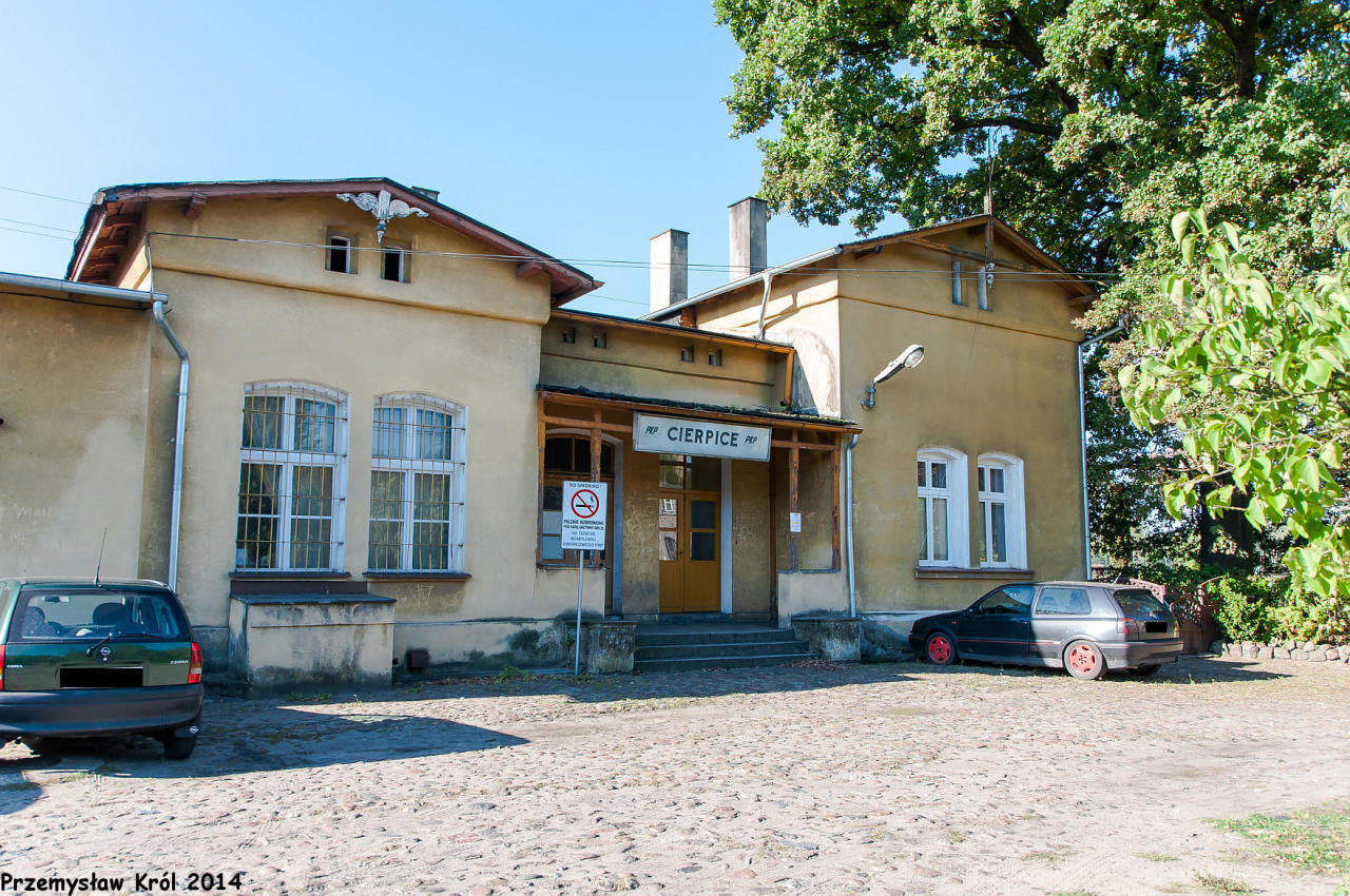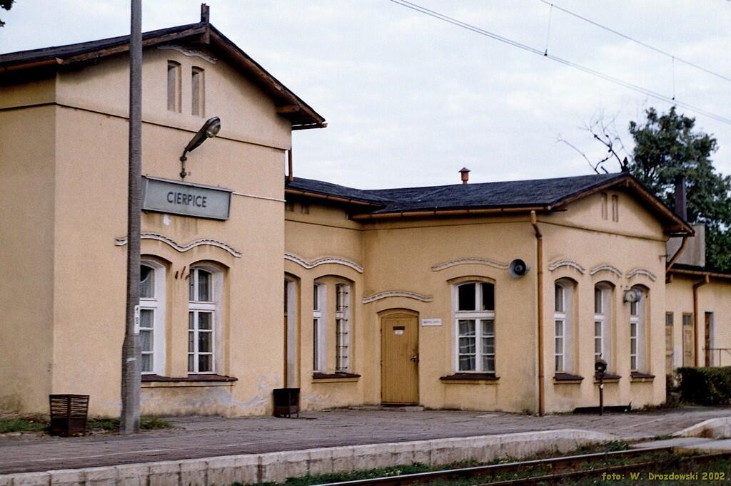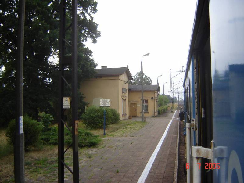 Widok na peron i budynek dworca od strony wjazdu z Bydgoszczy. W wysuniętej, centralnej części budynku mieści się nastawnia dysponująca.