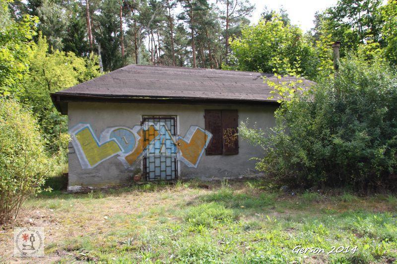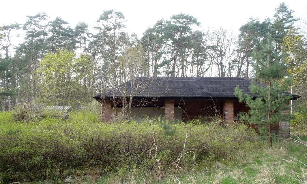 Widok od tyłu, zaplecze stacji, podwyższenie gruntu to prawdopodobnie piwnica (magazyn podziemny).
