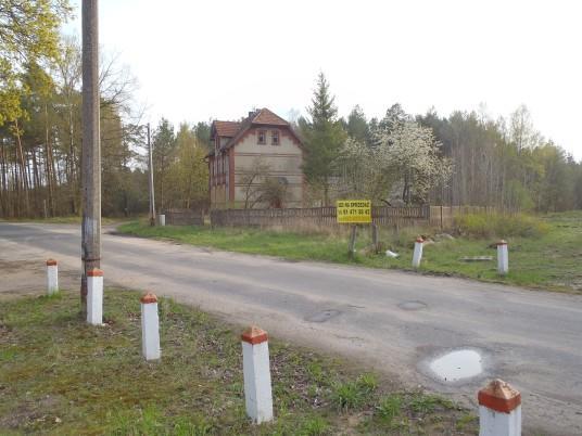 Opuszczony kolejowy budynek mieszkalny i gospodarczy.