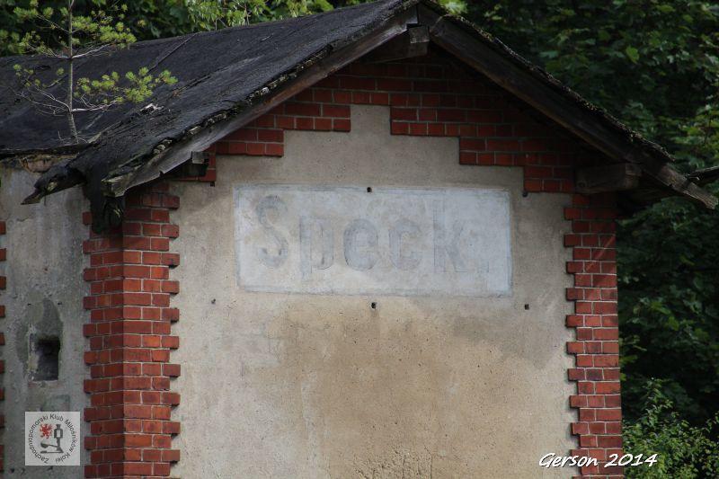 Niemiecka nazwa przystanku Speck. (Speck Bahnhof).