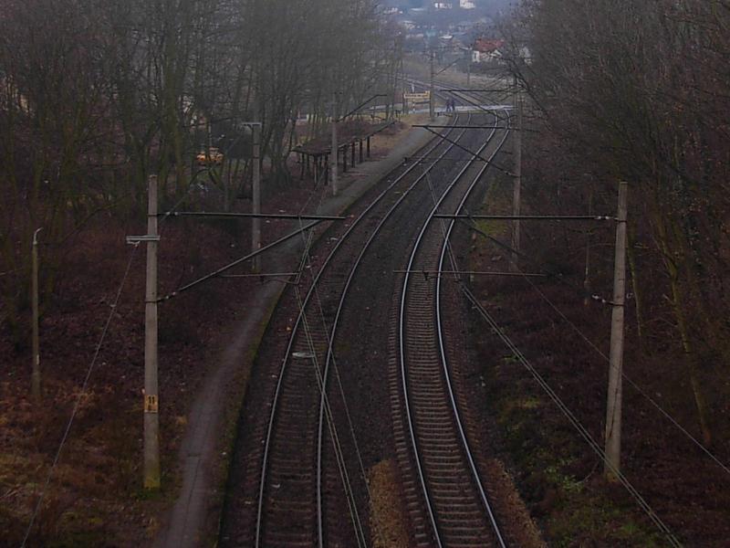 widok z kładki nad przystankiem, widok w kierunku Polic;