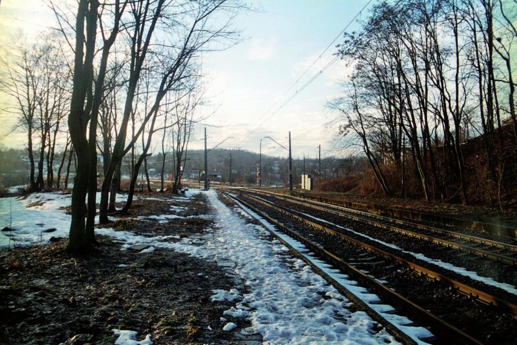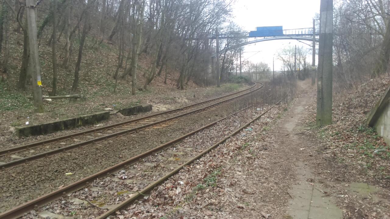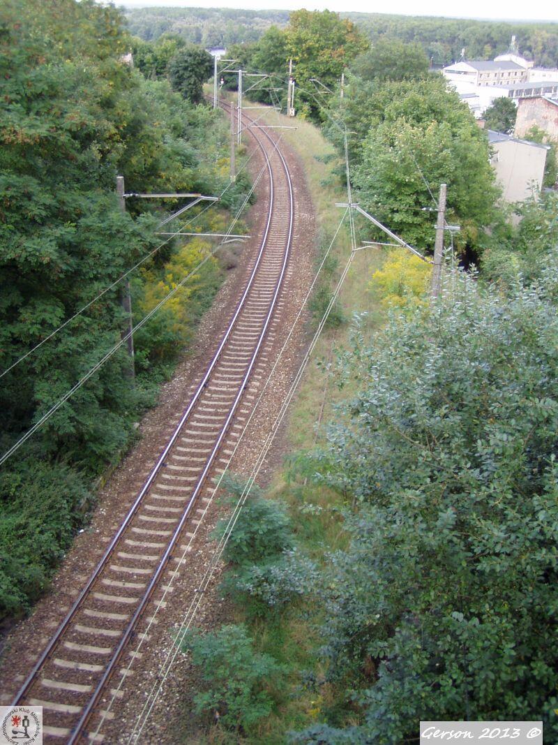 Widok z kładki za przystankiem Szczecin Golęcino w kierunku stacji Szczecin Gocław. Malownicza trasa szkoda, że nie kursują już tędy pociągi pasażerskie.
