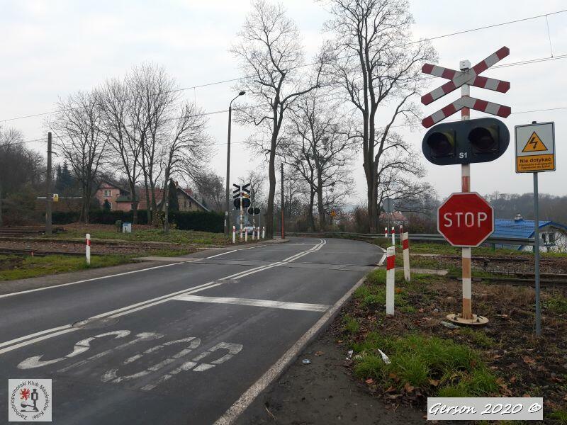 Przejazd kolejowy na ul. Świętojańskiej. W lewo przystanek Szczecin Golęcino, w prawo Szczecin Żelechowa.
