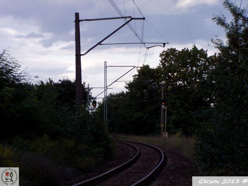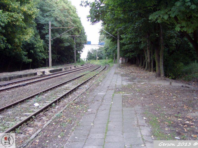 Widok z peronu 1 w kierunku Szczecina Gocław/Polic. Na zdjęciu widać czynny tor drugi. Tor pierwszy - zarośnięty znajduje się po prawej stronie.
