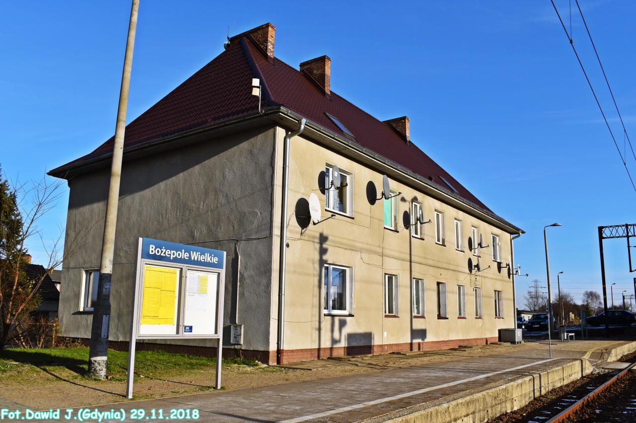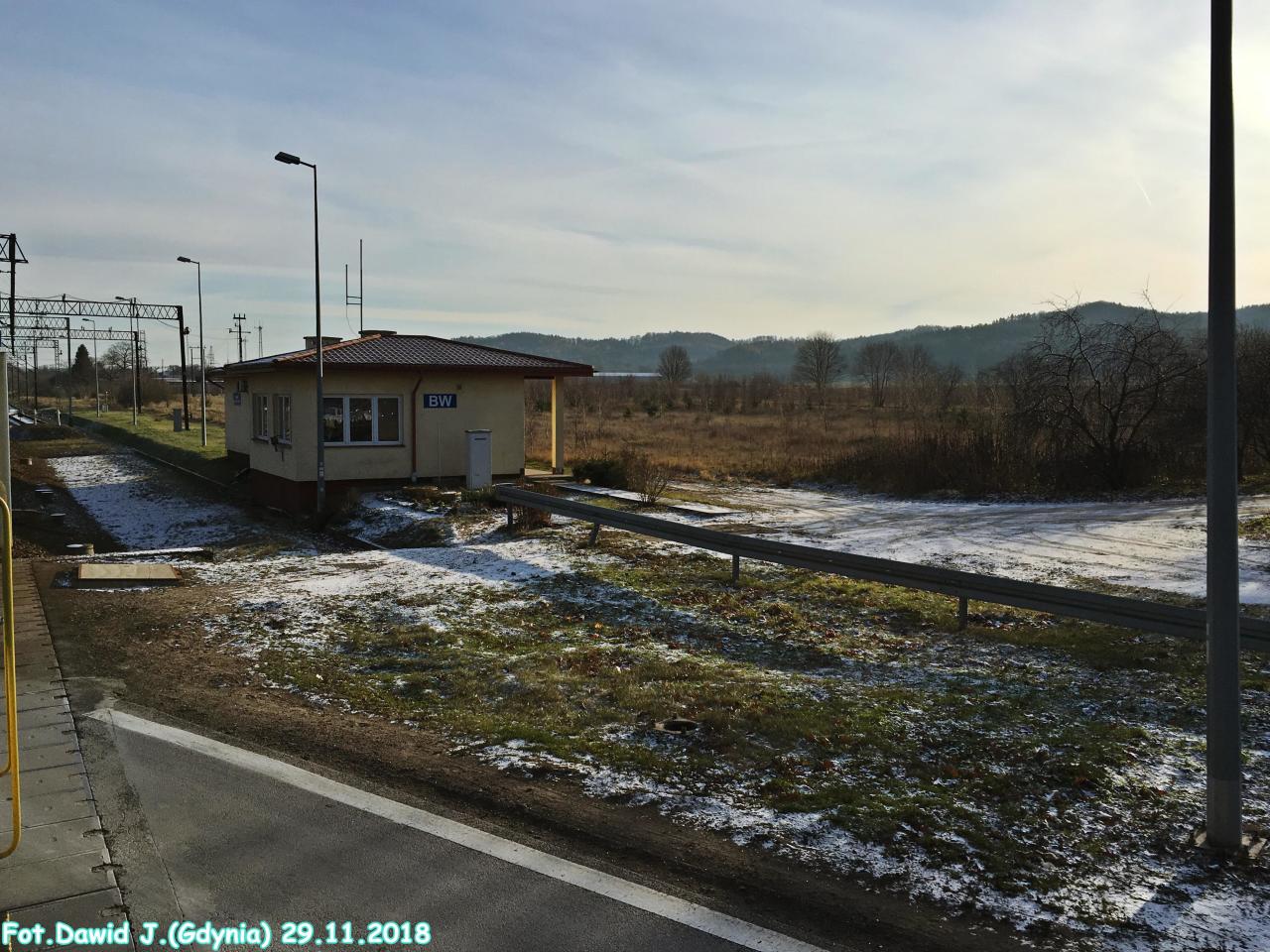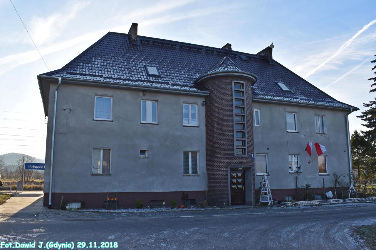 Bożepole BW1. Nastawnia wykonawcza po wschodniej stronie stacji. Kierunek Wejherowo w prawo.