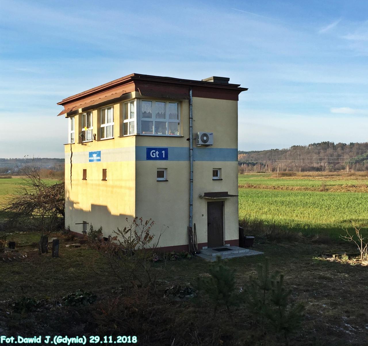 Budynek nastawni "Gt1" widoczny od strony torów. Widok w kierunku Lęborka/Słupska.