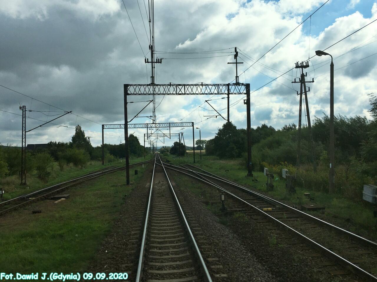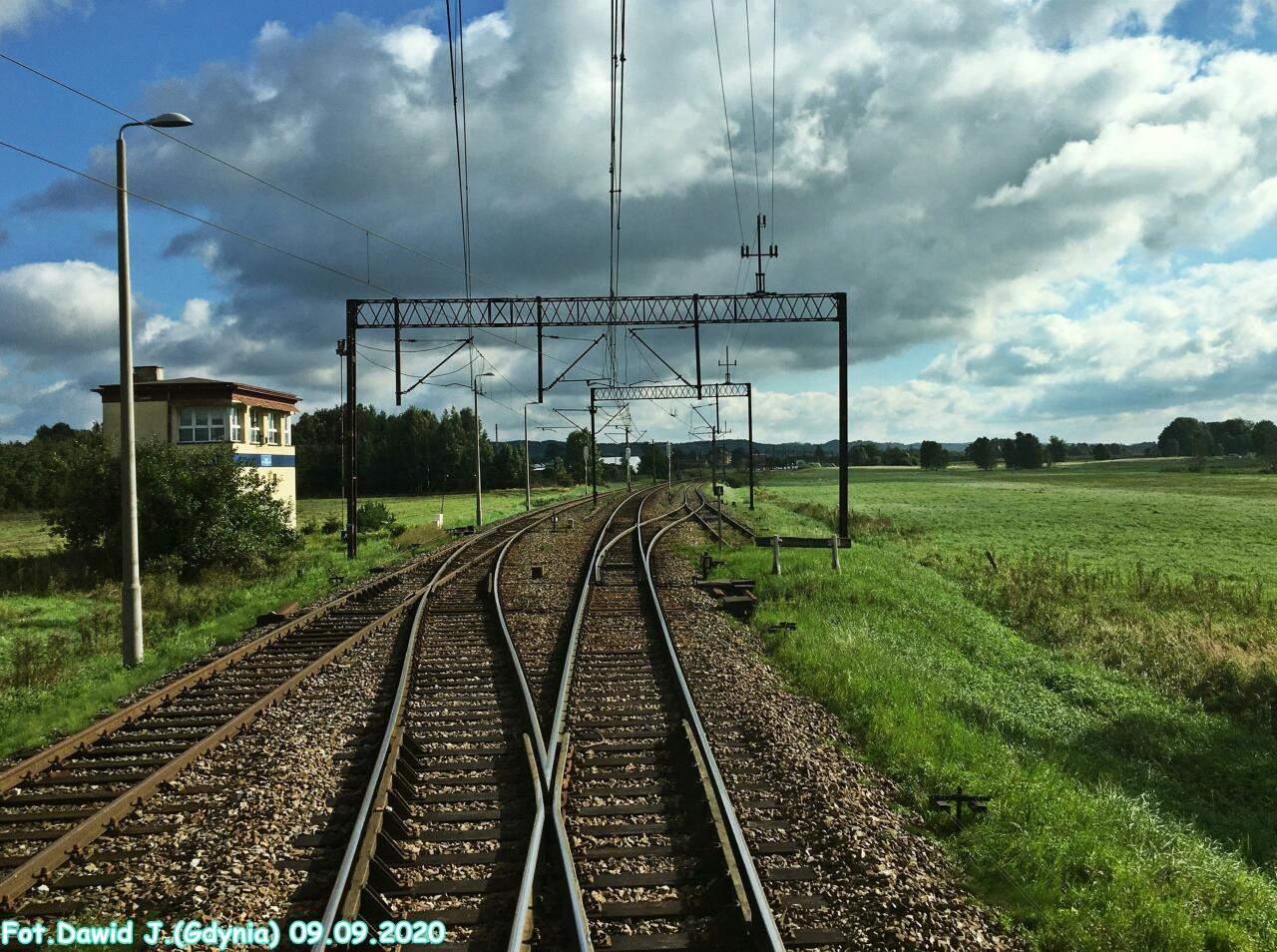 Wjazd na stację od strony Lęborka/Słupska. Budynek nastawni "Gt1" znajduje się po lewej stronie. Widok w kierunku Wejherowa/Gdyni Głównej.