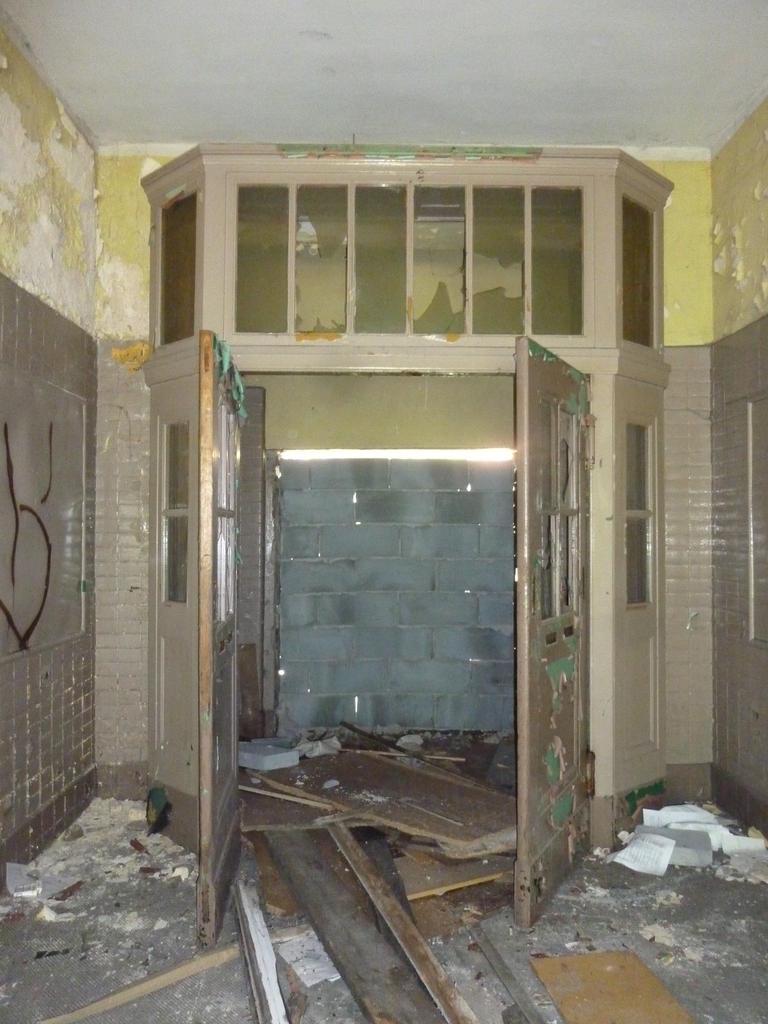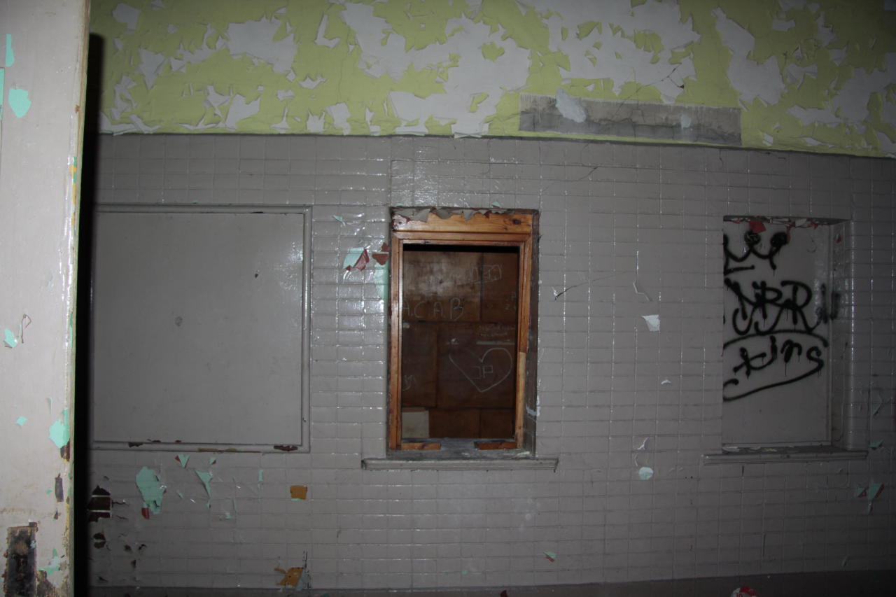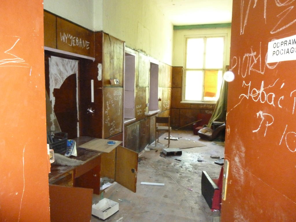 Hol kasowy. Zamurowane wejście na perony, po prawej poczekalnia (?).