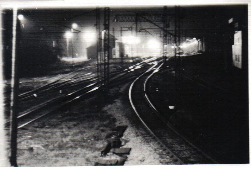 Kostuchna nocą. Widok z okna nastawni dysponującej w nocy. Fotka robiona na radzieckim, czarno-białym negatywie.