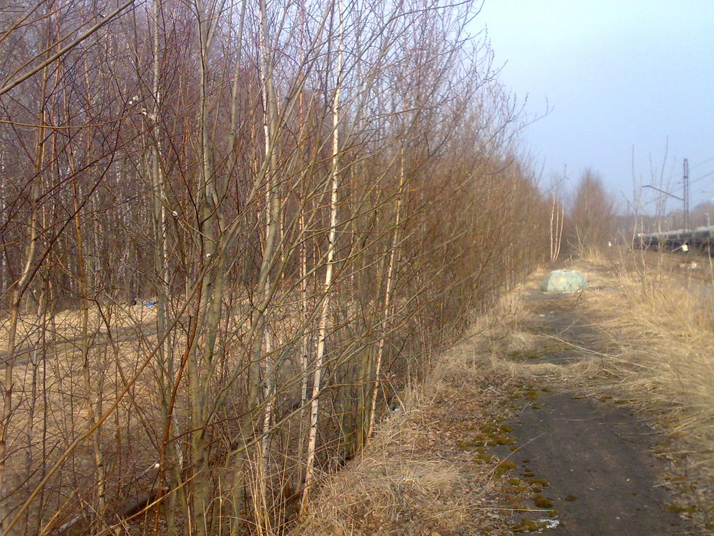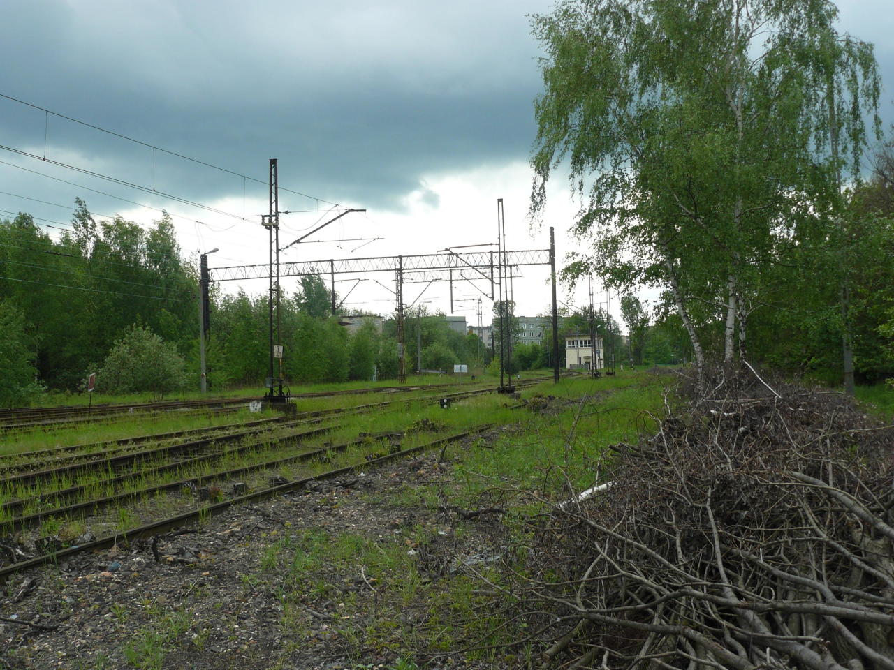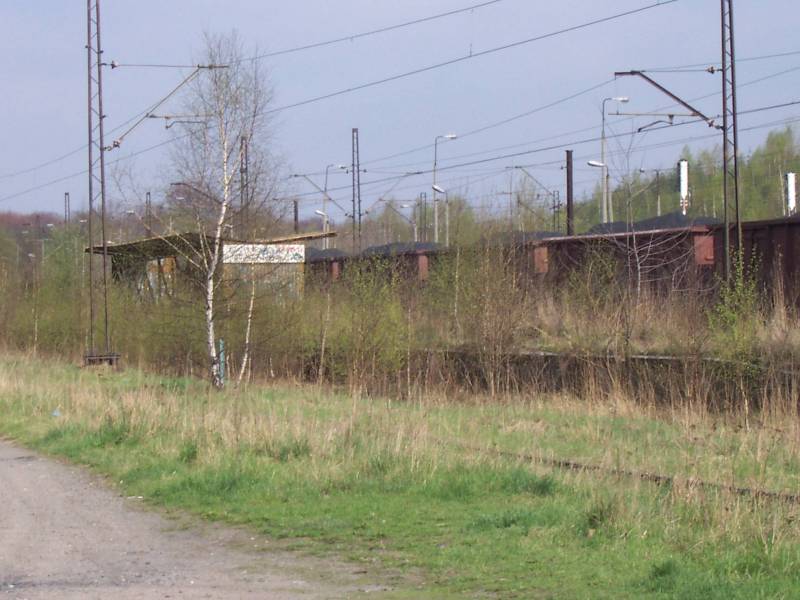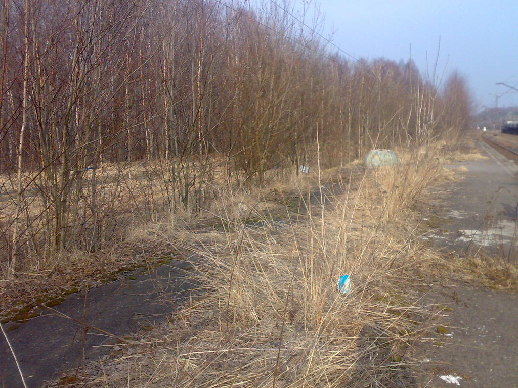 Tu znajduje się druga krawędź peronu. Widać zarośnięty drugi tor i rozebrany tor kolejki KWK.