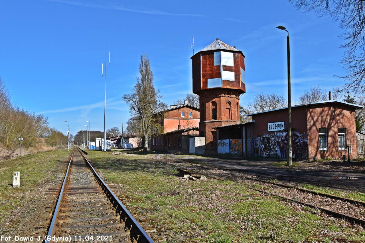 Wieża wodna była zbudowaną z inną częścią zbiornikową (z oknami), innym dachem, bez murku przed wejściem. Podobne wieże są m.in. w Gorzowie Wielkopolskim, Pile, Słupsku, Szubinie, Świdwinie, ale z częścią zbiornikową obłożoną drewnem. W 2008 r. podczas pobytu w Reczu Pomorskim spytałem Panią mieszkającą w budynku kolejowym obok wieży, do kiedy wieża była czynna? (bo większość wież już niestety nie działa), nieco skrzywiłem się bo odpowiedź brzmiała z lekkim wyrzutem "przecież mamy z niej wodę", dalszych pytań nie zadawałem. (info: Bolesław Wojtyniak, 11-05-2010). |
