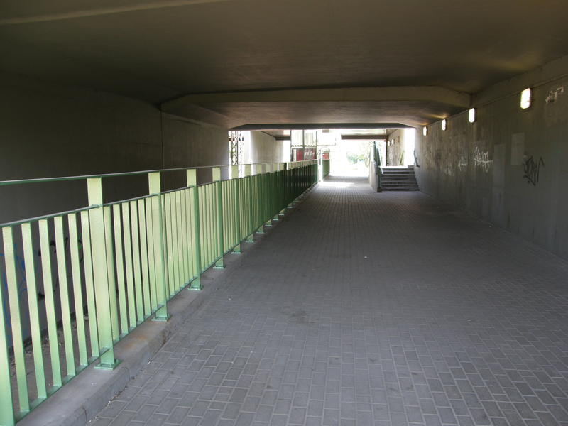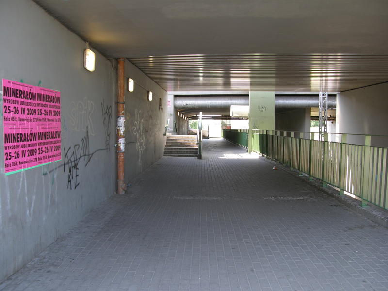 Północne przejście pod wiaduktem w kierunku do peronu. Widok w kierunku Warszawy Żwirki i Wigury (Radomia).