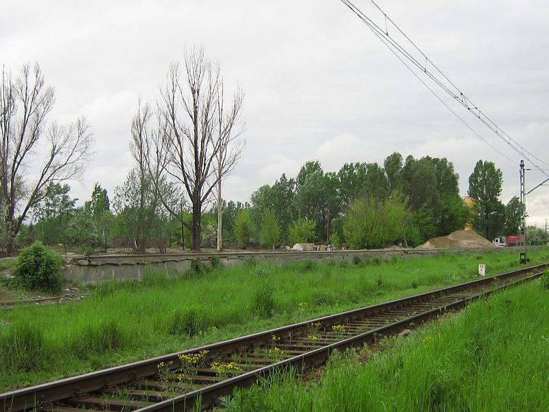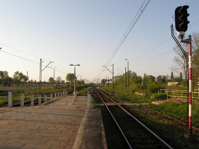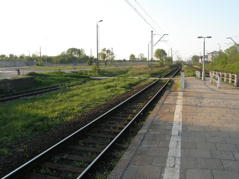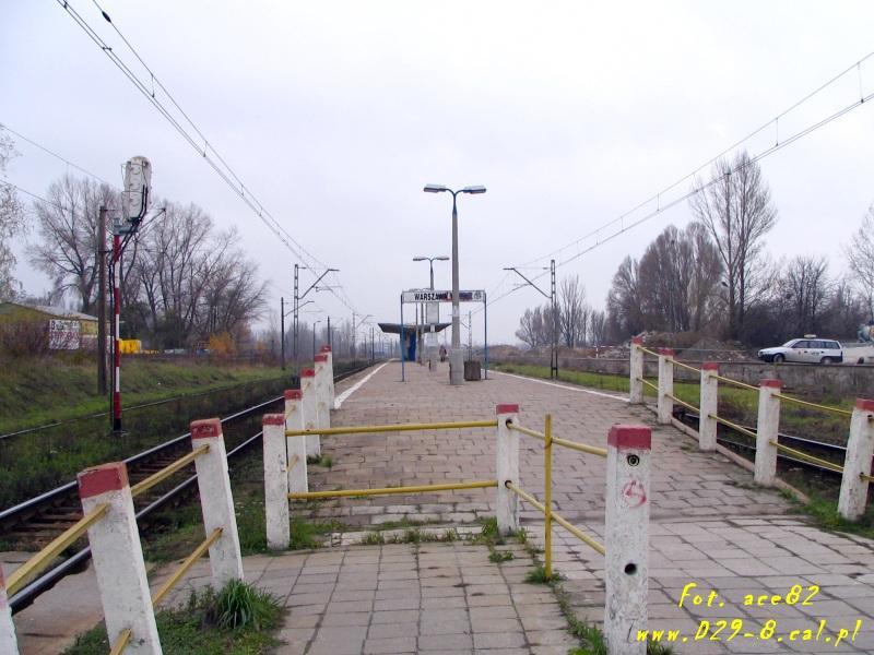 Peron. Widok w kierunku Warszawy Służewca. Mały budynek po prawej to nastawnia OK1. Po prawej rampa boczna o długości 660 m.