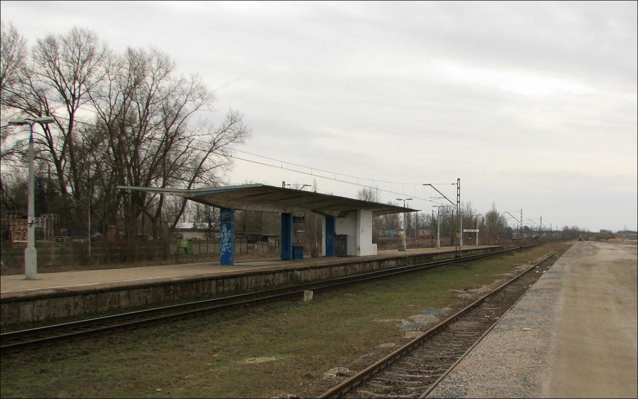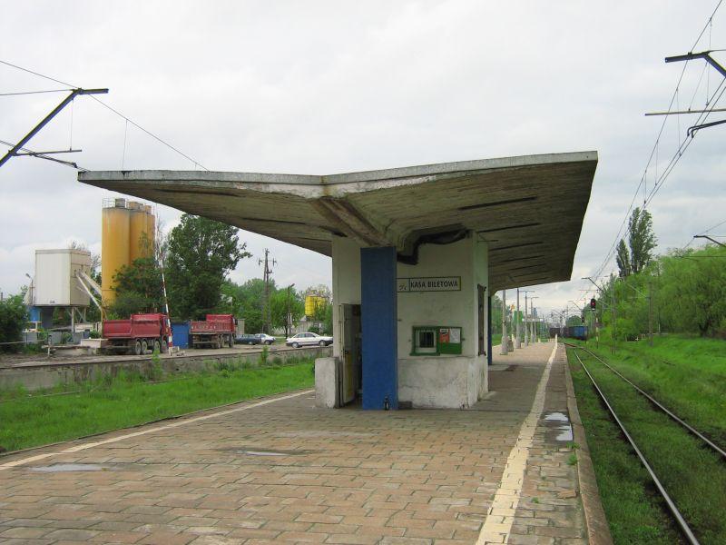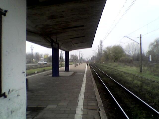 Peron. Widok w kierunku Warszawy Służewca. Mały budynek po prawej to nastawnia OK1.