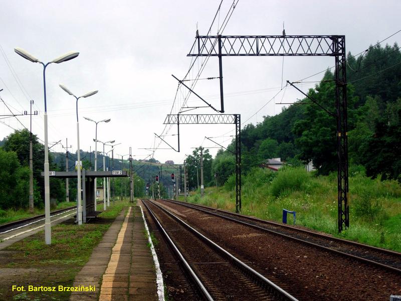 Stacja niedawno zmodernizowana. W budynku znajduje się poczekalnia i kasa biletowa. (info: Piotr Serwin) Za stacją szlak przechodzi w 1 tor, wchodzi do tunelu, po nim znów rozgałęzia się na 2 tory (koniec stacji i semafory wjazdowe są za tunelem!) Na stacji są 3 tory główne. Stacja grała w Kolejowej Kronice Filmowej nr 214 "Radiotelefony Pociągowe" (info: Mateusz Ważny, 2025-03-10). Budynek jest zamknięty. (info: Łukasz Wideł, 2007-03-31). |
