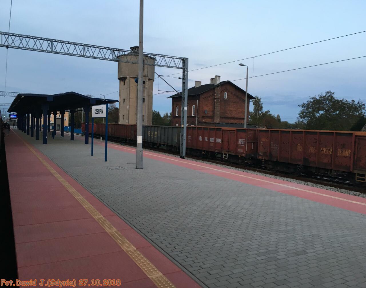 | wieża wodna: | wieża wodna znajduje się ok. 120m na południowy zachód od budynku dworca; stan zewnętrzny wieży - średni: tynk miejscami odchodzi, mała część okienek wybita - także w latarni, jest wskaźnik poziomu wody, drzwi w średnim stanie, zamknięte, dach względnie cały, miejscami zaczyna się rozwarstwiać; stan wewnętrzny - nierozpoznany. (info: Przemysław Warczyński, 2022-07-20) | |