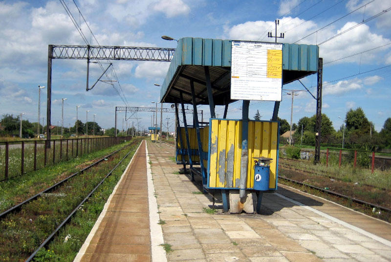 Stacja PKP Nisko. Jedyny peron. Widok w kierunku Stalowej Woli.