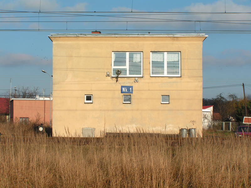 Nastawnia wykonawcza Nk1. Północno-wschodnia strona stacji. 113,762 km. W prawo perony, w lewo Stalowa Wola.