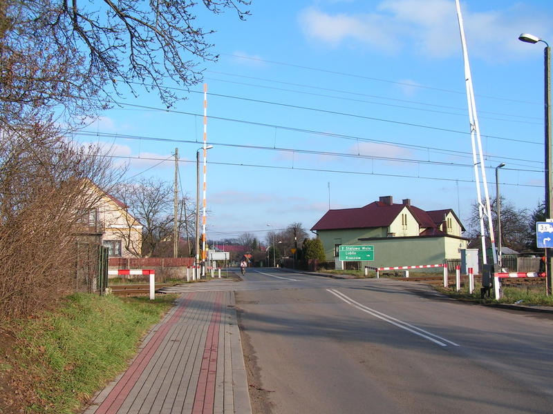 Przejazd w ciągu ulicy Głowackiego. Po lewej, poza kadrem nastawnia wykonawcza Nk1. Tory w lewo prowadzą do Stalowej Woli.