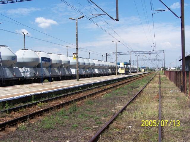 Widok z peronu wyspowego w kierunku Przeworska. Po lewej rampa boczna o długości ok. 400 m, magazyn, budynek dworca. Po prawej plac ładunkowy o długości ok. 600 m.
