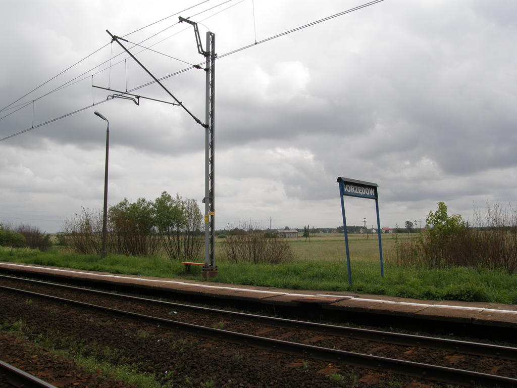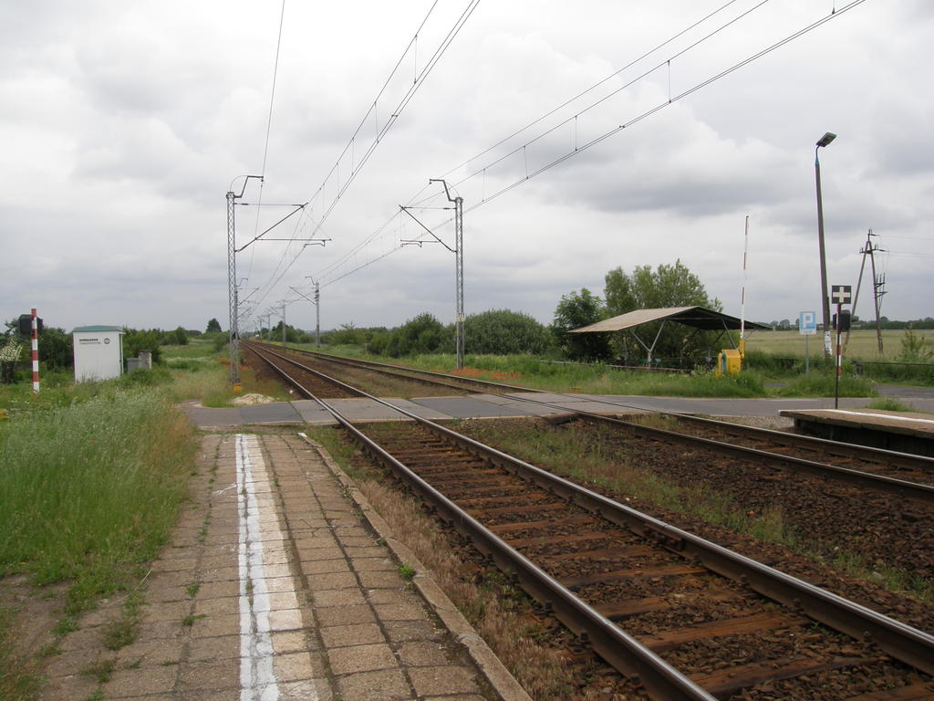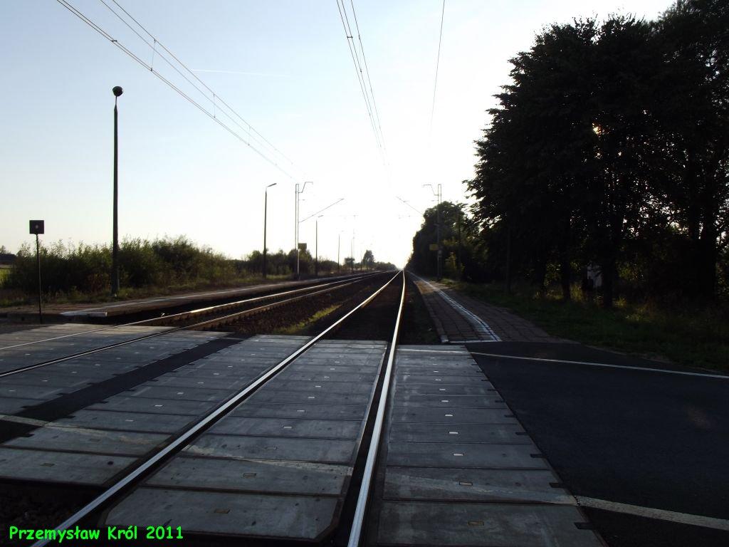 Przejazd drogowy w ciągu drogi Chrzanowice - Gorzędów. Widoczne dwa budynki mieszkalne. Perony boczne po lewej. W prawo Piotrków Trybunalski, w lewo Radomsko. 171,5 km.