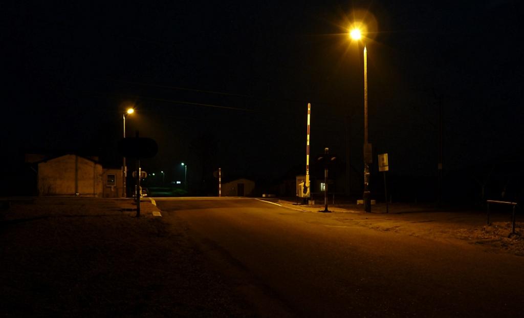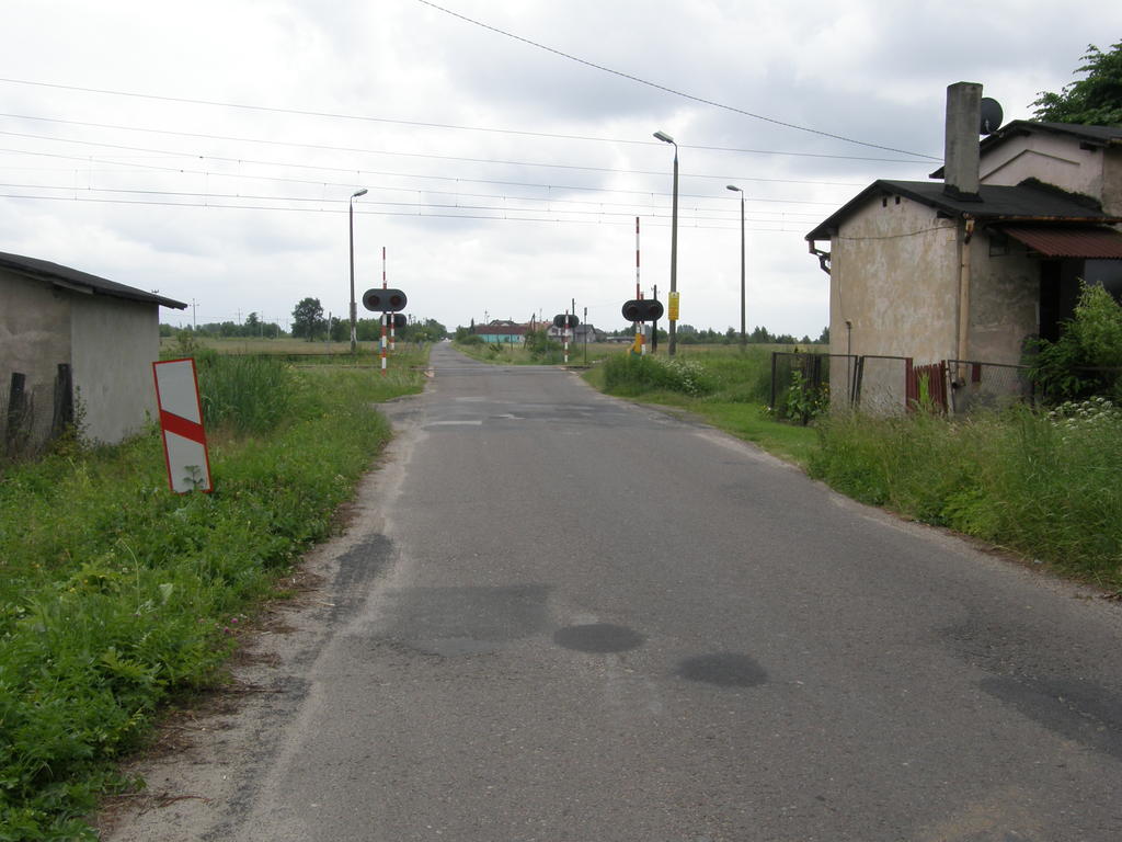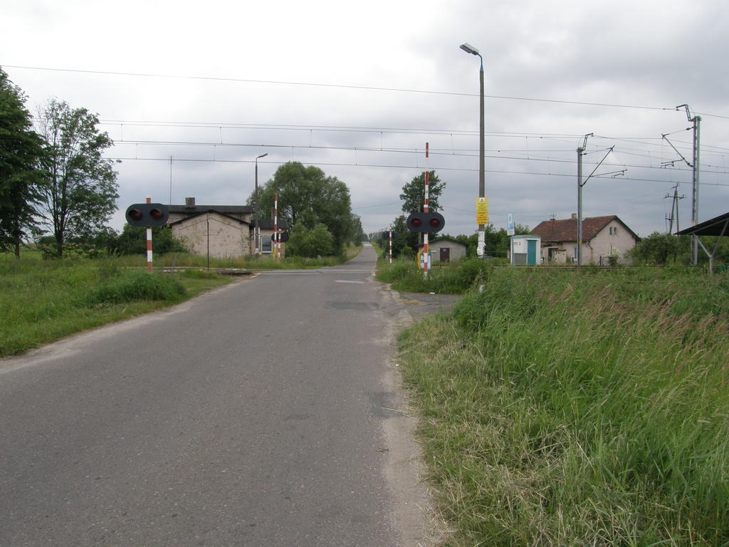 Przejazd kolejowy. Widok na przejazd kolejowy od strony drogi.