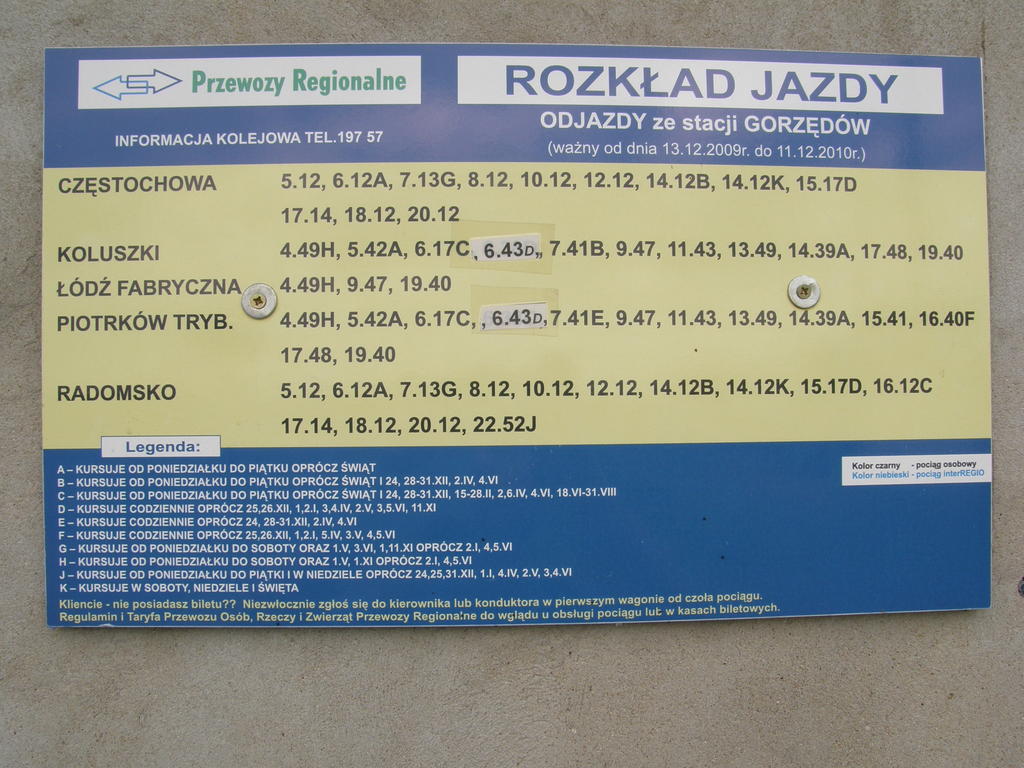 Rozkład jazdy ważny od 13-12-2009 do 11-12-2010. Najdłuższa relacja Łódź Fabryczna - 94 km.