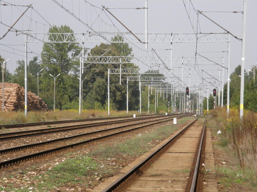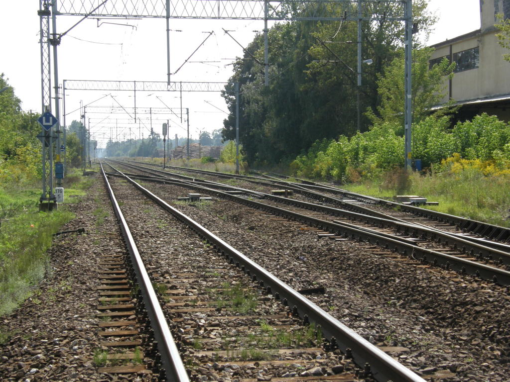 Północna głowica rozjazdowa; wyjazd na Piotrków Trybunalski. Widok w kierunku Radomska. 176,5 km.