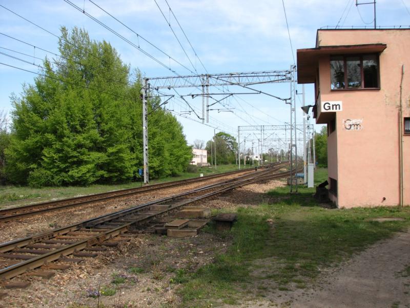Północna głowica rozjazdowa; wyjazd na Piotrków Trybunalski. Zakład wytwarzania tworzyw sztucznych Erigs S.A, który ma bocznicę kolejową. W prawo Piotrków Trybunalski, w lewo Radomsko. 176,5 km.