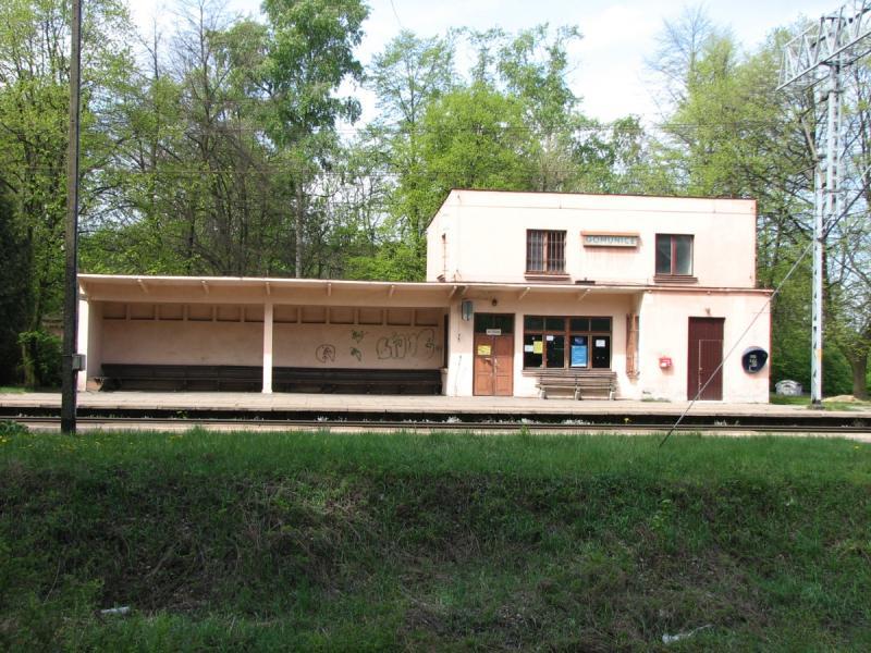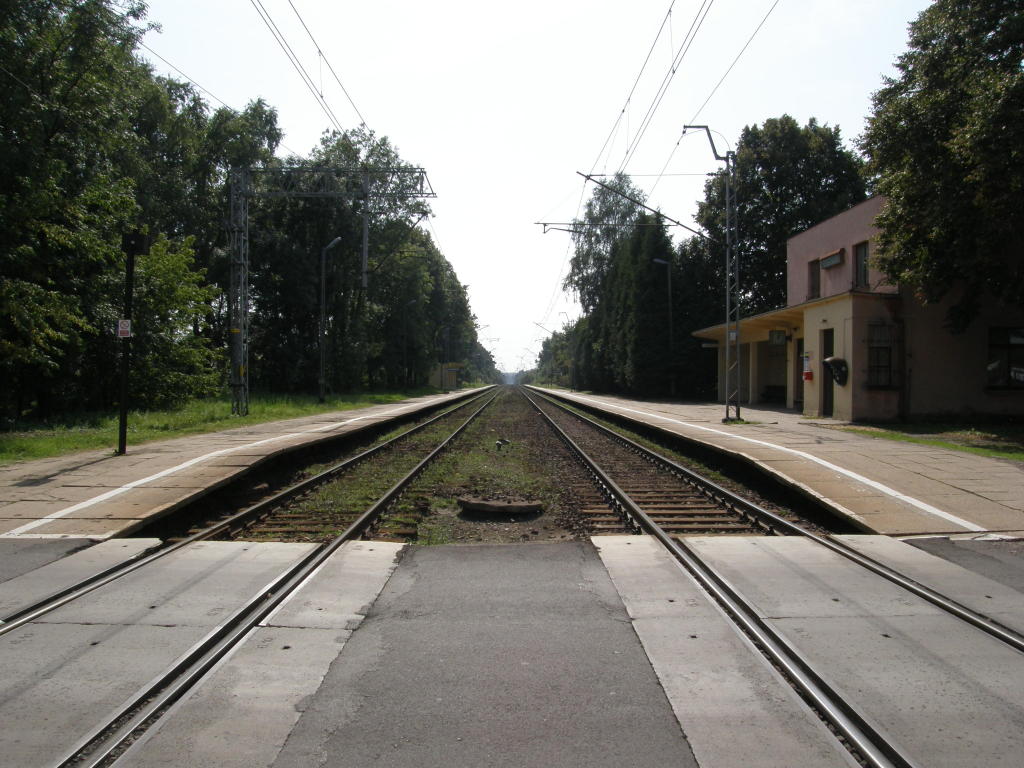 Południowa głowica rozjazdowa; wyjazd na Radomsko. Jedyna na stacji nastawnia Gm. W lewo Piotrków Trybunalski, w prawo Radomsko. 177,6 km.