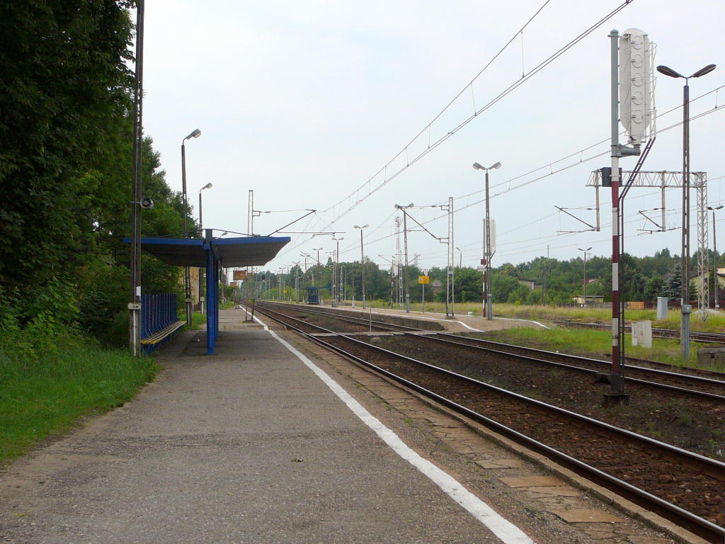 Kłomnice, km 208,2. Peron. Widok w stronę Częstochowy.