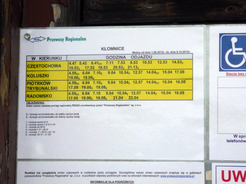 Kłomnice. Aktualny rozkład jazdy.