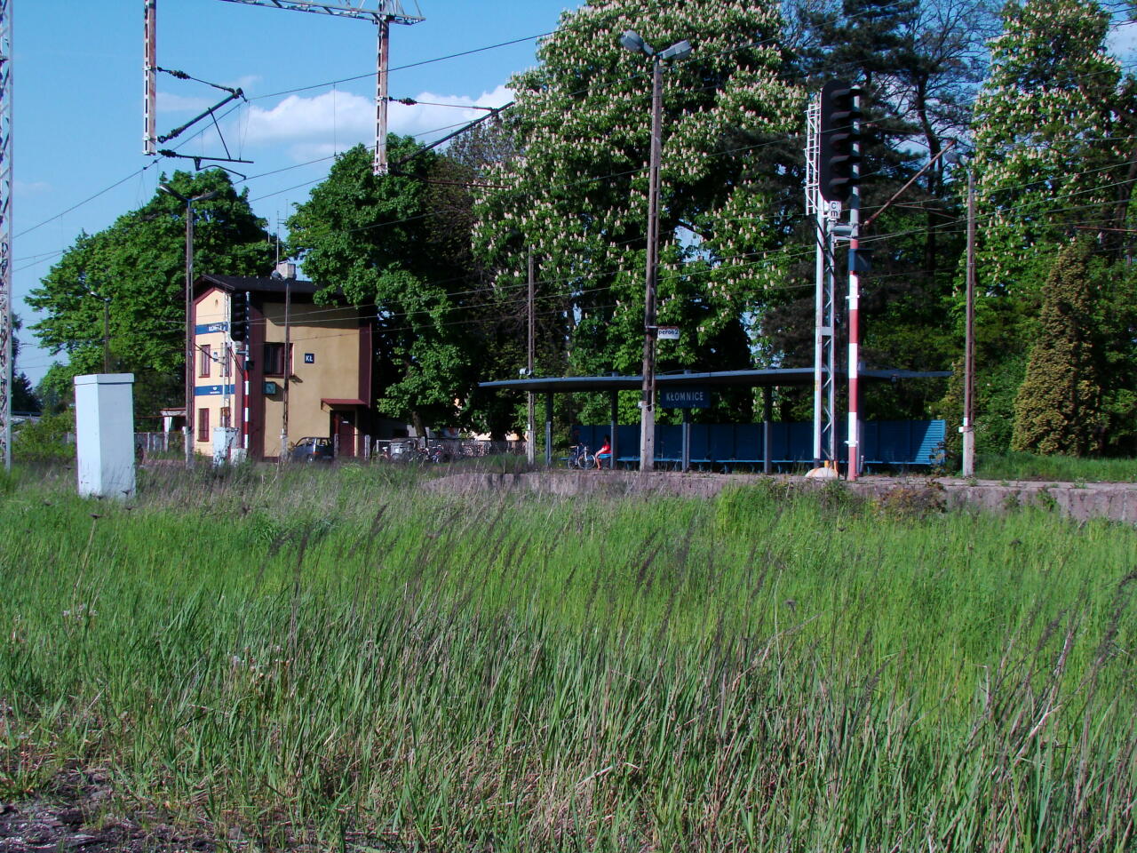 Kłomnice, km 208,2. Dworzec; w lewo Częstochowa, w prawo Radomsko.