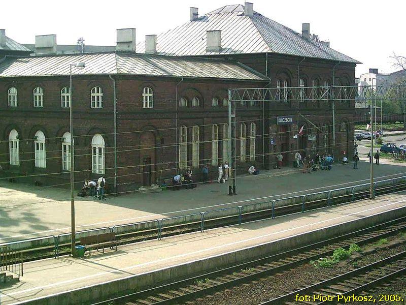 Widok na dworzec kolejowy od strony podjazdu w kierunku południowo-wschodnim. Ciekawostką jest fakt zlokalizowania ongiś kładki dla pieszych z tej (południowej) strony dworca. Obecnie kładka znajduję się po jego przeciwnej stronie. Z lewej strony wschodnie perony 3 i 4, obsługujące pociągi z/do Ostrowa Wielkopolskiego. Z prawej strony zachodnie perony 1 i 2, obsługujące pociągi z/do Wrocławia oraz Opola.