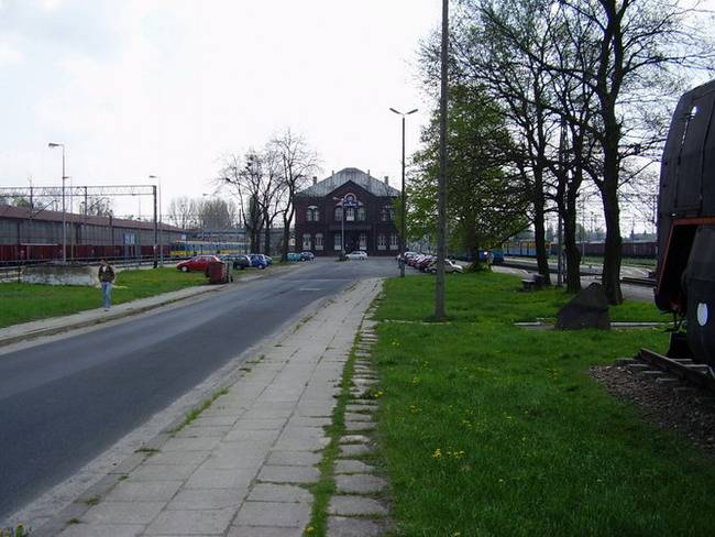 Droga dojazdowa do budynku dworca. Z prawej perony zachodnie: 1 i 2, z lewej perony wschodnie: 3 i 4. Widok w kierunku południowo-wschodnim, od strony wjazdów z Namysłowa/Wrocław (perony 1 i 2) i Kępna/Poznania (perony 3 i 4).