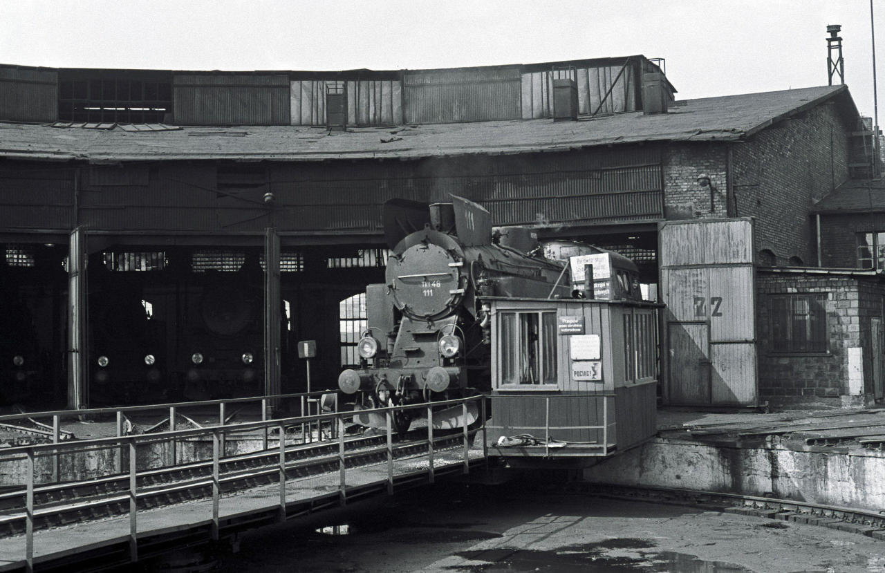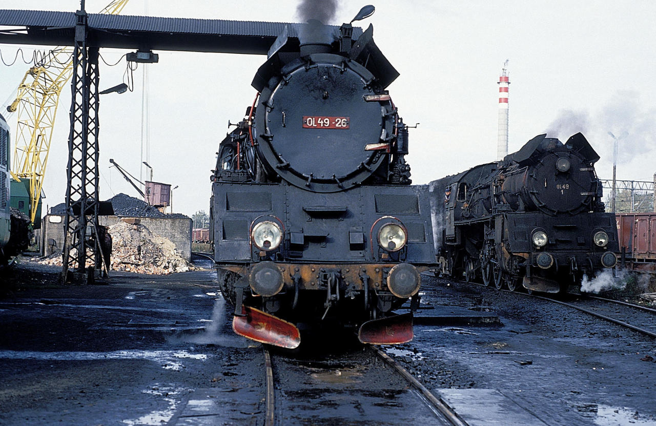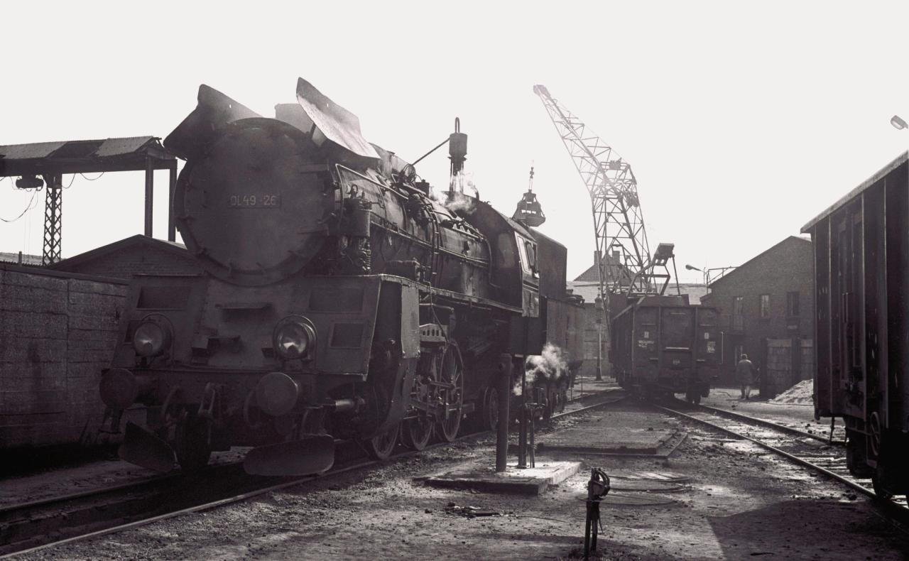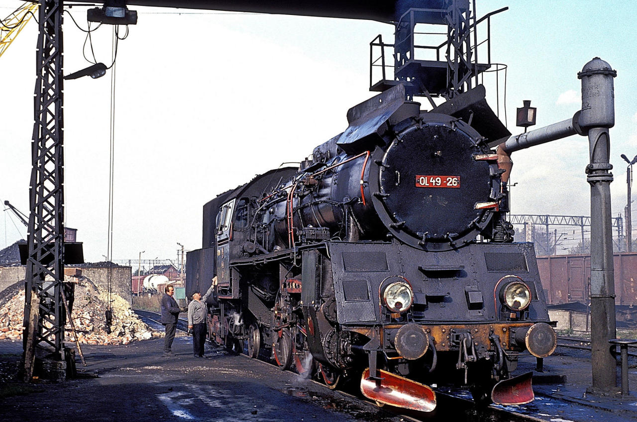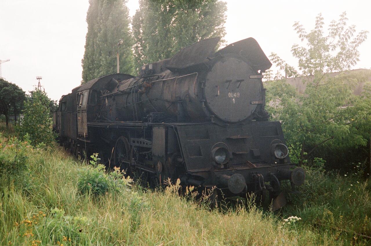 Wycofana z eksploatacji Ol49-1 na torach trakcyjnych w pobliżu miejscowej parowozowni.