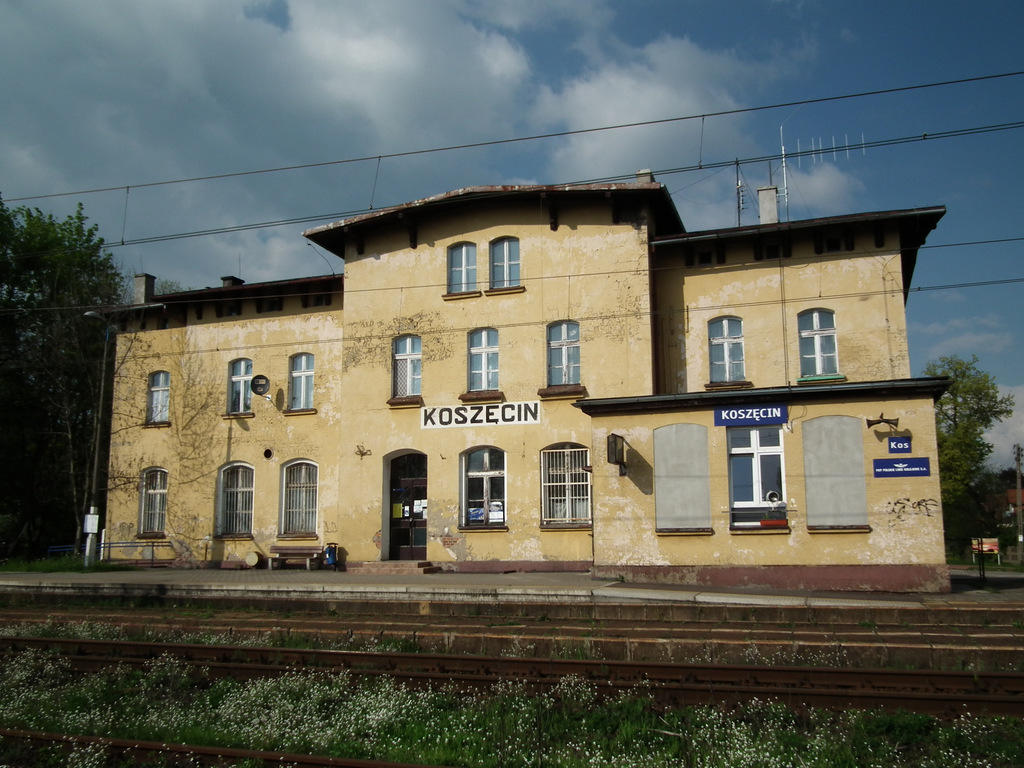 Opis ogólny: Koszęcin to zabytkowa stacja w przepięknej wsi powiatu lublinieckiego. Stacja, typowa na peryferiach: gmach dworcowy, jedna nastawnia, wieża wodna. Do niedawna tutejsza rampa służyła rozładunkowi licznych towarów rolnych i leśnych, dzisiaj niestety wszystko zamarło. Budynek dworca zamknięty, rampa i bocznica używane niezwykle rzadko, budynek magazynu pokryty graffiti. (info: Andrzej Nowakowski, 2005-04-14) Kasa czynna jest tylko w dni robocze, na pierwszej zmianie. Na południe od budynku stacyjnego (w stronę wieży wodnej) widać ślady dawnych peronów. (info: Andrzej Wysocki, 2005-05-16) Po emisji 14 grudnia 2010 roku reportażu "Wsiąść do pociągu..." w programie TVP2 EKSPRES REPORTERÓW o zbyt niskich peronach na stacji. W 2011 roku Peron 1 został podniesiony oraz ułożono nową nawierzchnię(Telewizja wszystko pomoże załatwić!!!)(info andrzejkoza 2012-09-28 Opis infrastruktury: W 1972 roku zlikwidowano 30 tonową wagę wagonową(info andrzejkoza 2012-09-28) Opis budynków: Wieża wodna stoi ok. 240 m na pd-wsch od budynku dworca kolejowego, po drugiej stronie torów, przy wiadukcie(ul. Piaskowa), - podobne wieże stoją m.in. na stacjach: Chełmża, Kcynia, Strzałkowo, Wronki (info: Bolesław Wojtyniak, 28-01-2012) |