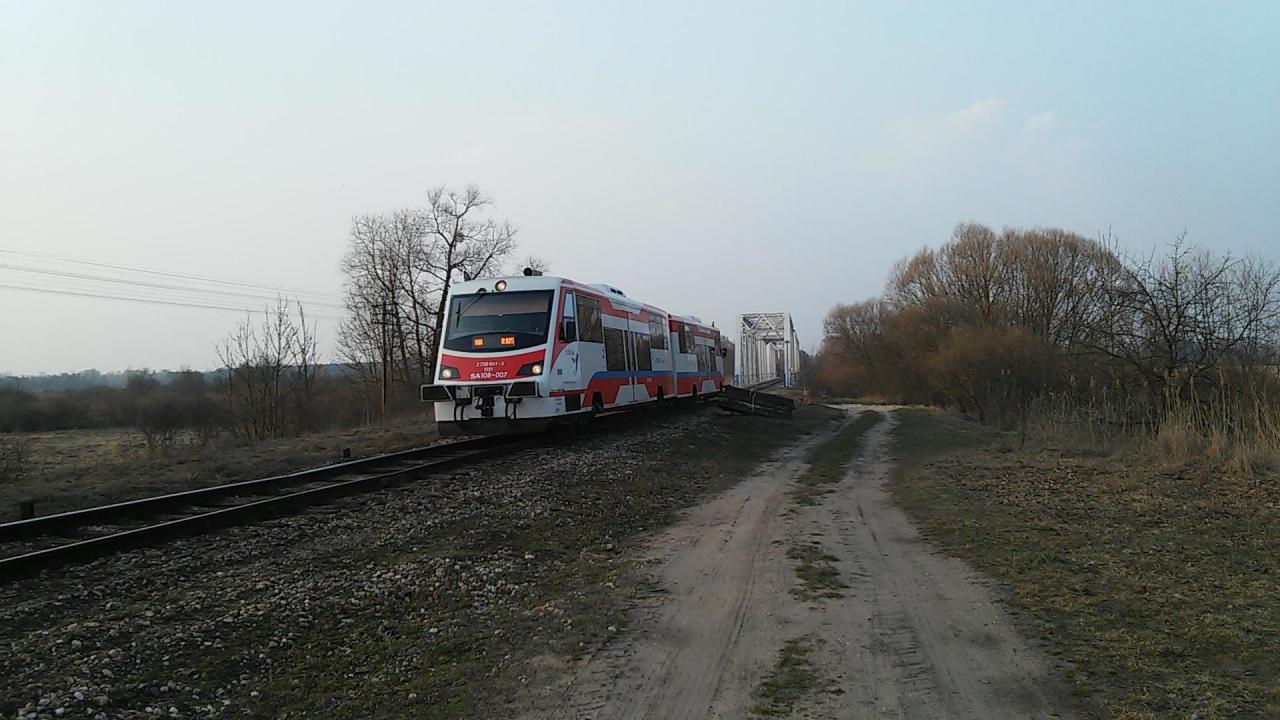 Strabla - szynobus na moście kolejowym. Ostatni tego dnia, wieczorny kurs do Czeremchy…