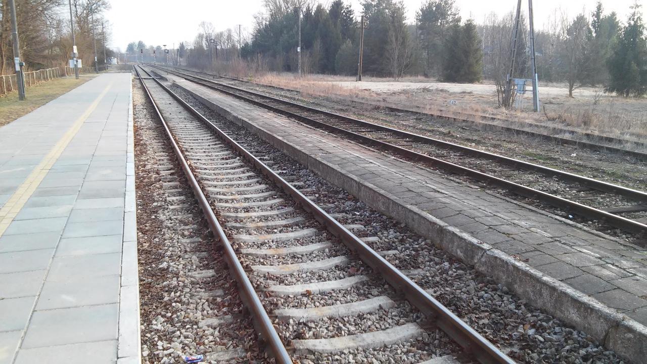Strabla. Widok z peronu 2 w kierunku Białegostoku. Po prawej stronie peron 1.